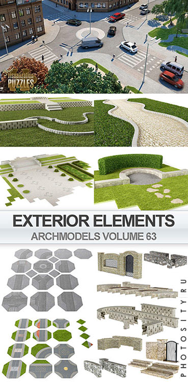 Более 470 3D моделей изгородей, стен вокруг домов, красивых газонов, реалистичных лестниц, дорог и многое другое для экстерьера. Форматы: max (Vray, Mental Ray) + jpg (Renders) + PDF-каталог + maps. Платформа 3DMax 2008, VRay 1.5 SP1. Для удобства модели отделены от текстур, НО, без текстур данный сборник практически бесполезен. Архив (общий вес): 7 Гб