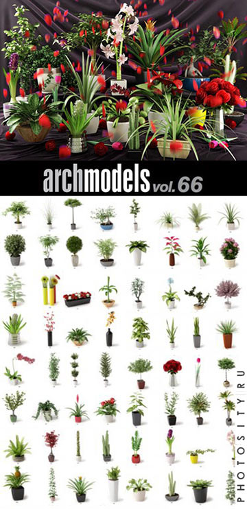 Коллекция Archmodels Vol.66 содержит 3d модели растений, цветов, букетов, кустов,